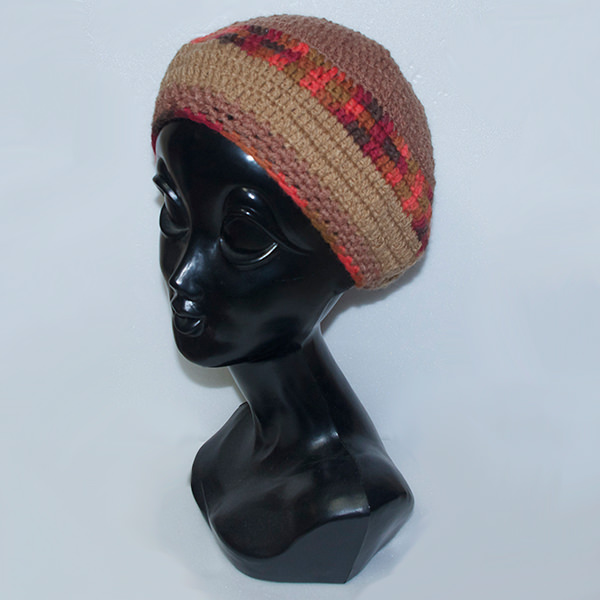 - 詳細 : 茶色ベースの温かみのあるカラーのニット帽子です。