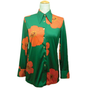 - 詳細 : かなりキレイな緑にオレンジの花柄のブラウスです。