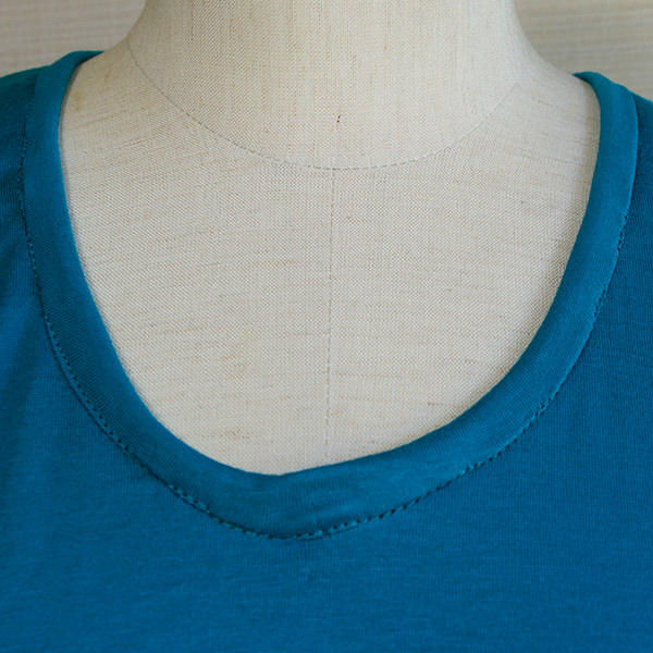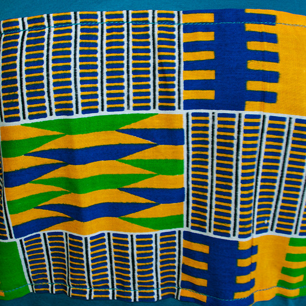 - 詳細 : エメラルドブルー〜グリーン系のケンテ柄バティックが付いたTシャツです。