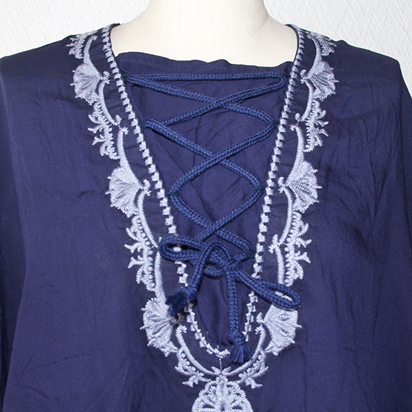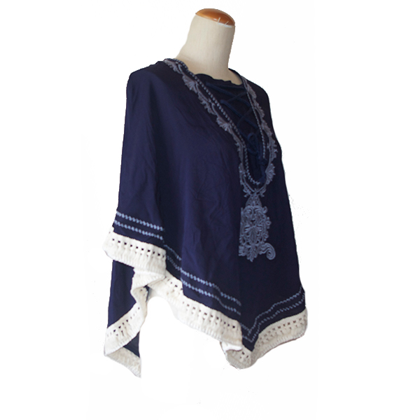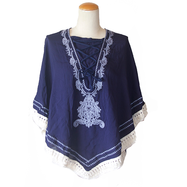 刺繍フリンジポンチョトップス