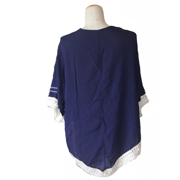 - 詳細 : 濃いめのネイビーに白のフリンジがついた大人っぽいポンチョトップスです。