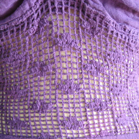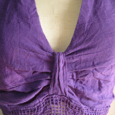 後ろはシャーリング、バックリボンつき。お腹部分はクロシェです。