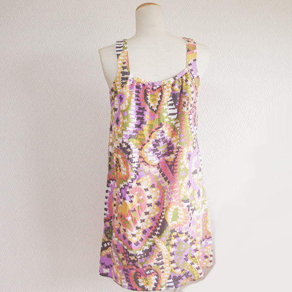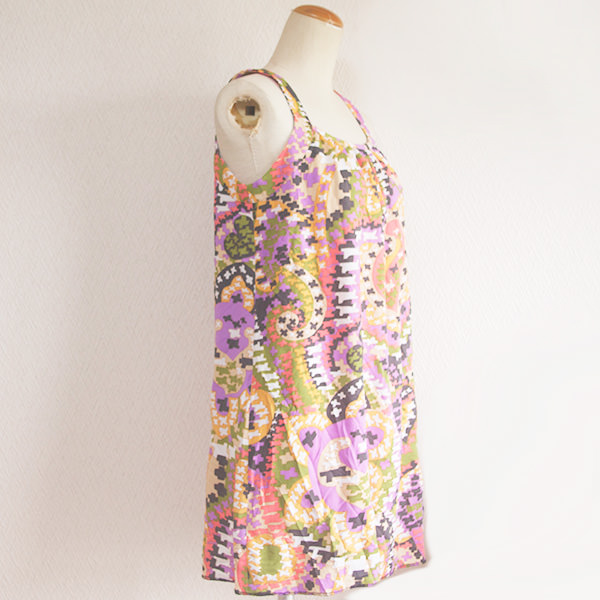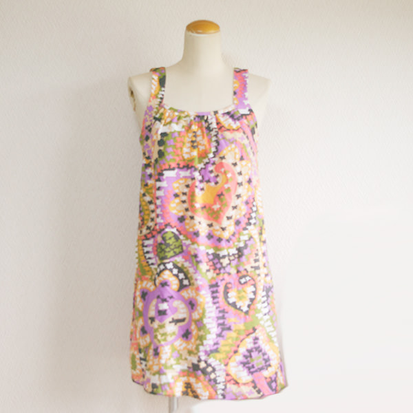 - 詳細 : フランス古着のピンクを基調とした幾何学模様柄キャピソール型ワンピースです。