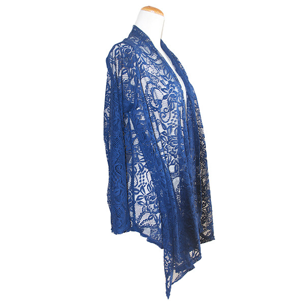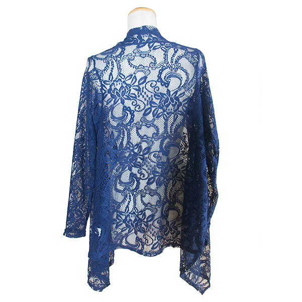 - 詳細 : ネイビー色の落ち着いた総レースカーディガンです。前身頃が少し下がっていて
