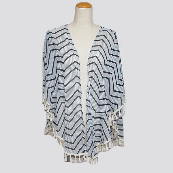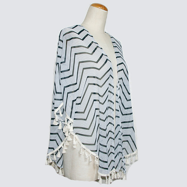 シェブロンストライプ柄シフォンカーディガン