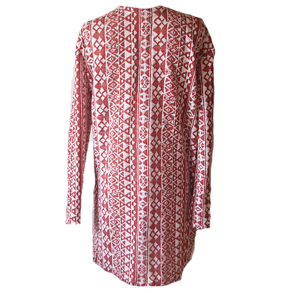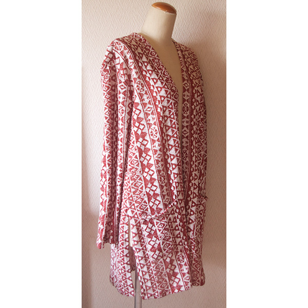 • 詳細 : 白地に赤茶系のブラウンのエスニック柄がかわいいサマーニットロングカーディガンです。