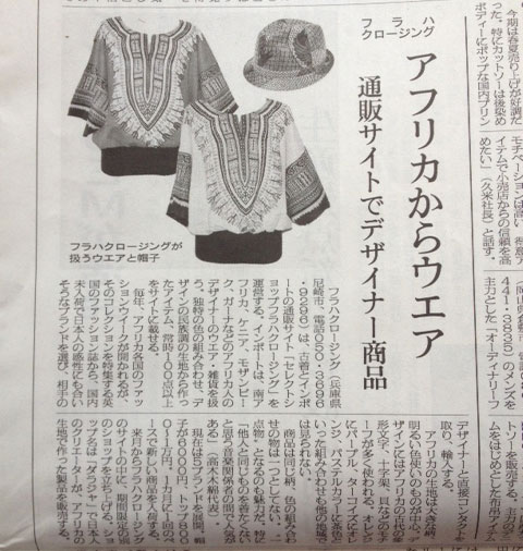 アパレル業界の新聞、繊研新聞にFuraha clothingが掲載されました。