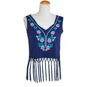 エスニック柄ワイドパンツ刺繍Vネックワンピース刺繍フリンジノースリーブトップス幾何学模様ノースリーブトップス