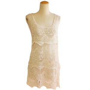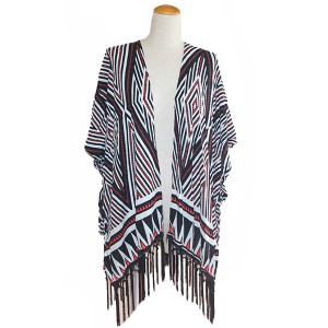 フリンジジグザク柄カーディガンサーモンピンクVネックワンピース