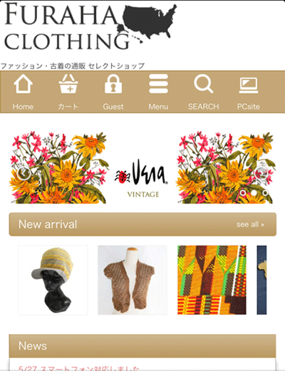 「セレクトショップ furaha clothing」のスマートフォン向けサイトの特徴